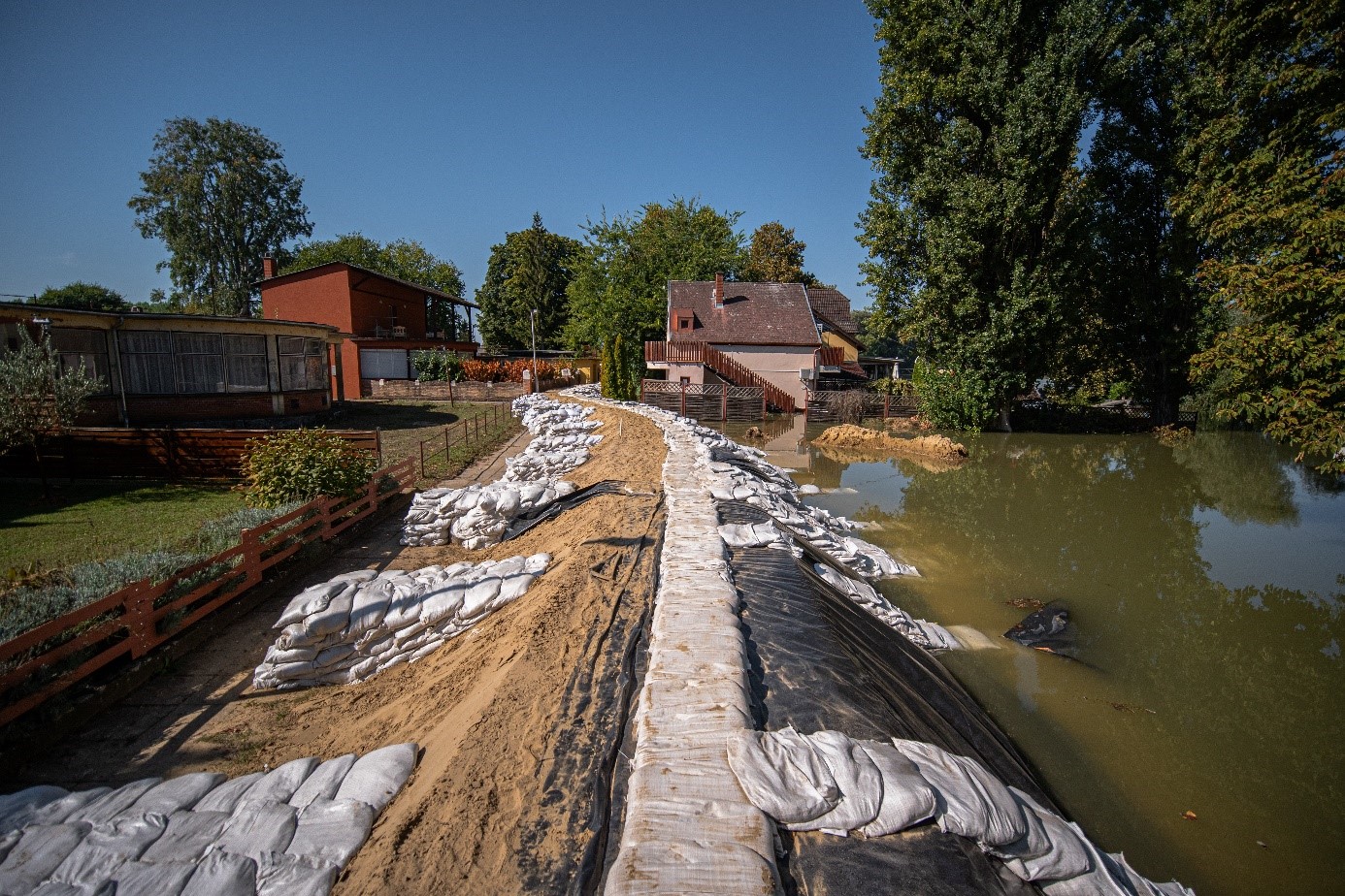 3. ábra. Azokon a településeken, ahol nincs kiépítve töltés, ott a védekezés során ideiglenes védmű kiépítése válhat szükségessé. (Baja, Petőfi-sziget, 2024.09.23. Jobbágy Zoltán)