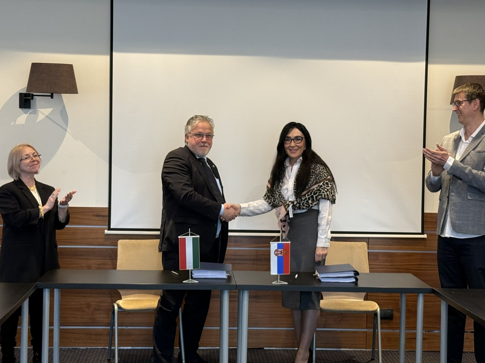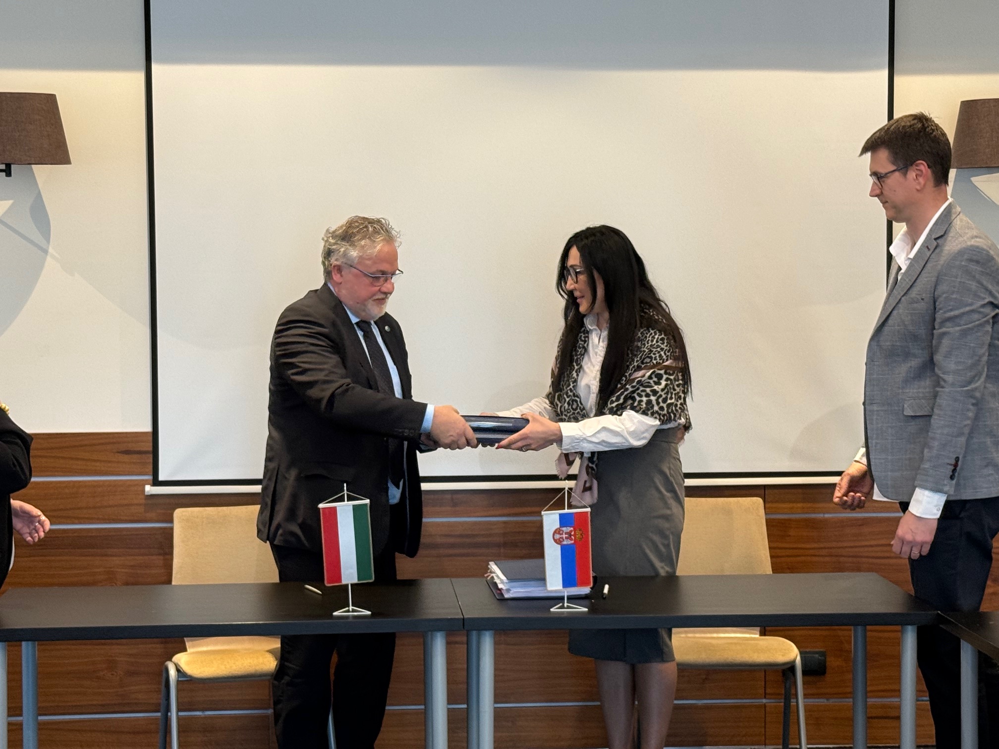 A képen Lábdy Jenő, a magyar tagozat kormánymeghatalmazott-helyettese és Bozana Prior, a szerb tagozat kormánymeghatalmazottja