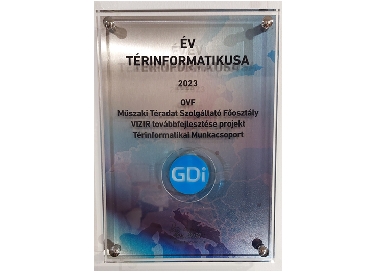 A délelőtti előadások programja a térinformatikai díjátadóval zárult. Nagy büszkeség a vízügyi ágazat számára, hogy az „Év Térinformatikusa” díjat az OVF Műszaki Téradat Szolgáltató Főosztály VIZIR továbbfejlesztése projekt Térinformatikai Munkacsoport nyerte el.