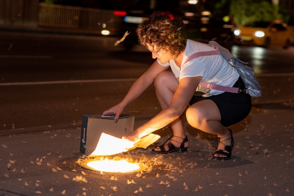 2022.08.03-án este 9 és 10 óra között az Erzsébet-híd pesti hídfőjénél a köztéri világítás csapdájába esett dunavirág raj mentésére vállalkoztunk páran az Országos Vízügyi Főigazgatóságtól. A rendelkezésünkre álló eszközök szegényesek voltak, de a célnak megfeleltek. Egy A4-es papírcsomag dobozfedele volt a hordozótálca és egy elhasznált nagyméretű boríték a söprű.