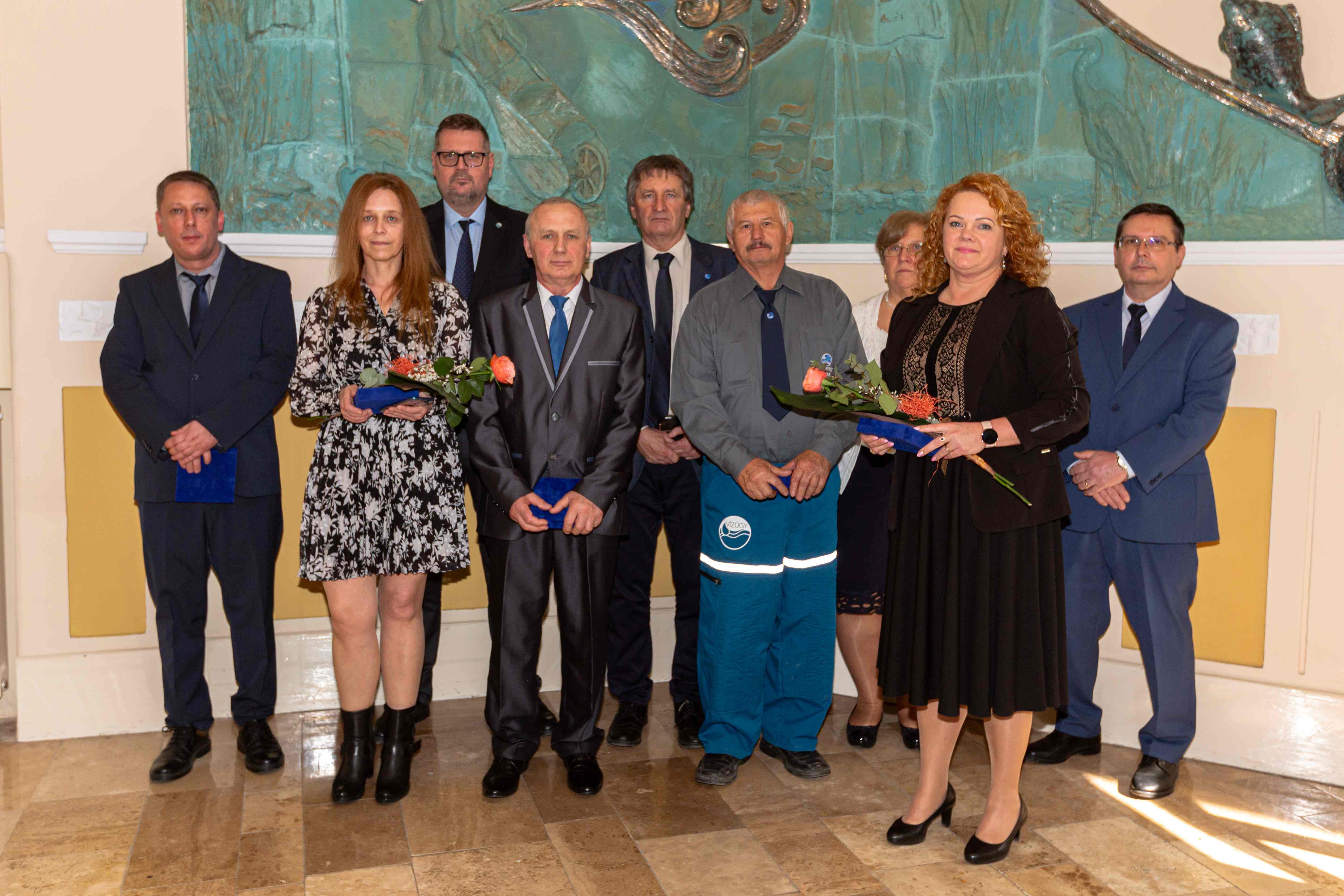 Szabó János igazgató úr Elismerő Oklevelet és Igazgatósági Díjat adományozott dolgozóink részére a Víz Világnapja alkalmából kiváló szakmai munkájuk elismeréseként.