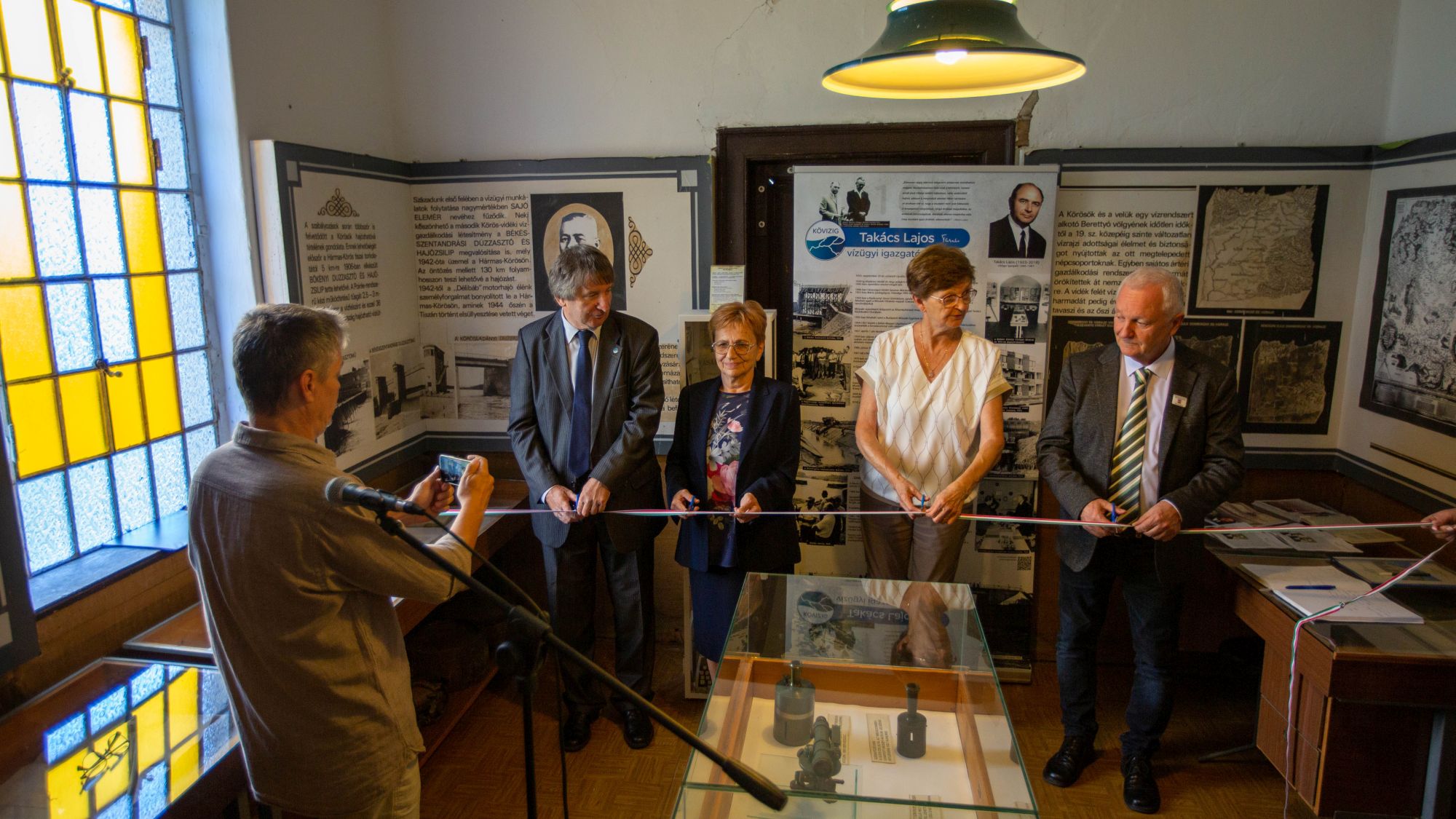 Az esemény a Hosszúfok I. sz. szivattyútelepen található Bodoki Károly Vízügyi Múzeumban folytatódott. Avatóbeszédében dr. Vasas Ferencné a Bodoki Károly Vízügyi Múzeum Baráti Kör tagja elmondta, hogy az emléksarok kialakításának gondolata 2019-ben vetődött fel, mikor Takács Lajos lánya, édesapja hagyatékából személyes tárgyakat adományozott az igazgatóságnak. Ezen tárgyak most az emléksarok vitrinjében láthatóak. A Baráti Kör nagy örömmel állt az emléksarok kialakításának ügye mellé, hiszen célkitűzésük a vízügyi múlt értékeinek ápolása, különös tekintettel arra is, hogy Igazgató Úr nyugdíjas évei alatt a Baráti Kör tagja is volt. Az esemény végén - az ünnepélyes szalagátvágást követően - átadtuk a nagyközönség részére is a Takács Lajos-emléksarkot.